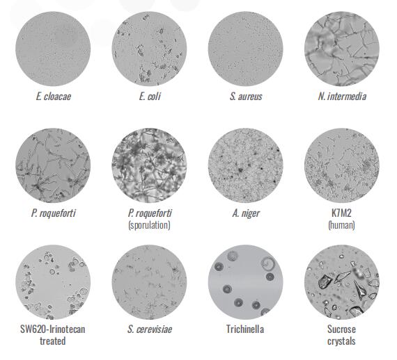 系统可以分析任何样品:细菌、酵母、真菌、寄生虫、哺乳动物细胞和晶体。